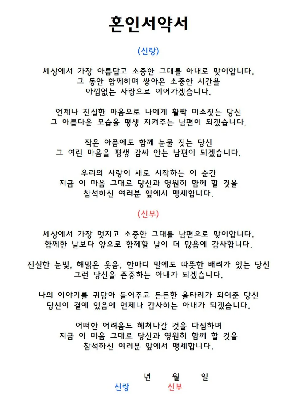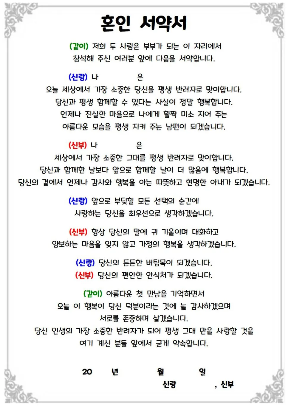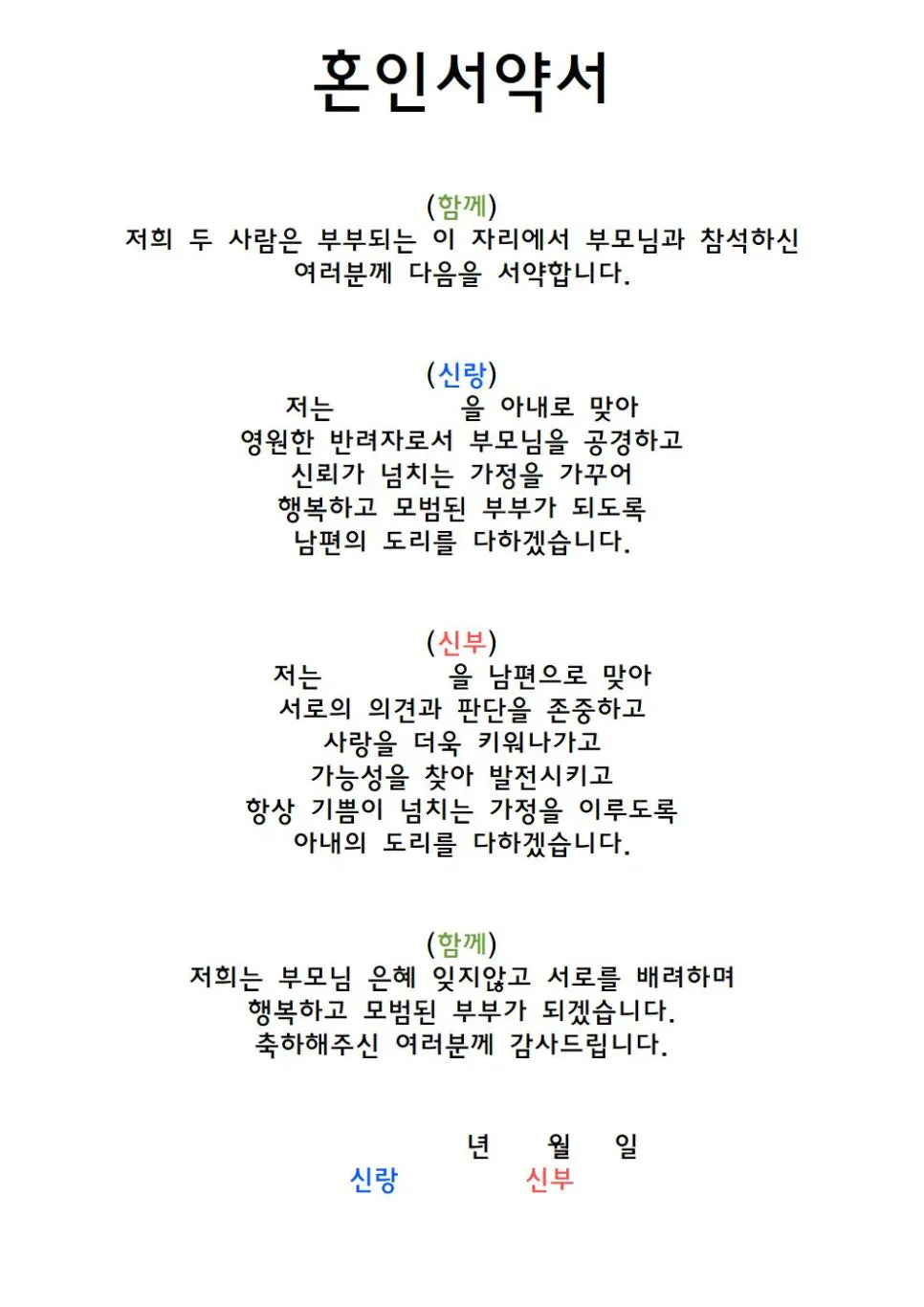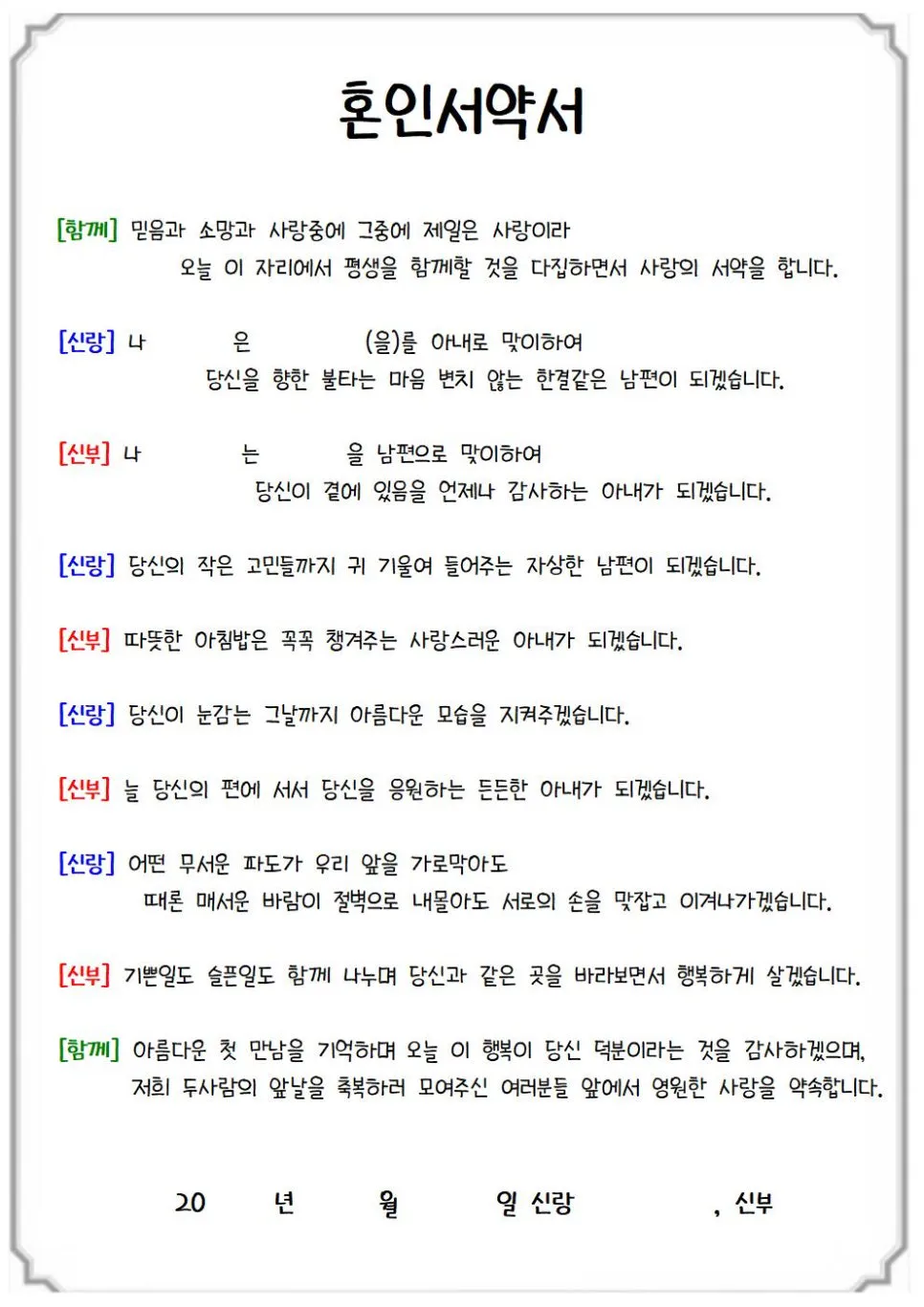 #결혼식 #혼인서약서 #성혼선언문 #결혼식순서 #덕담 #결혼준비 #웨딩체크리스트
