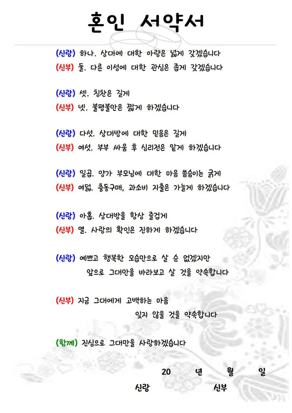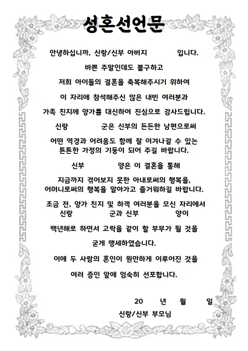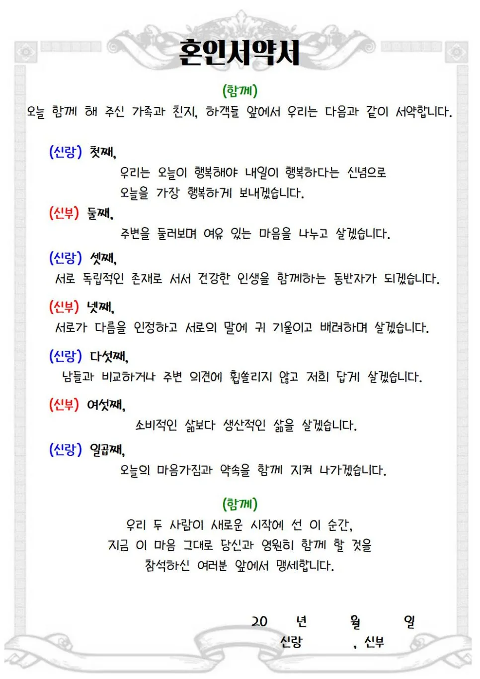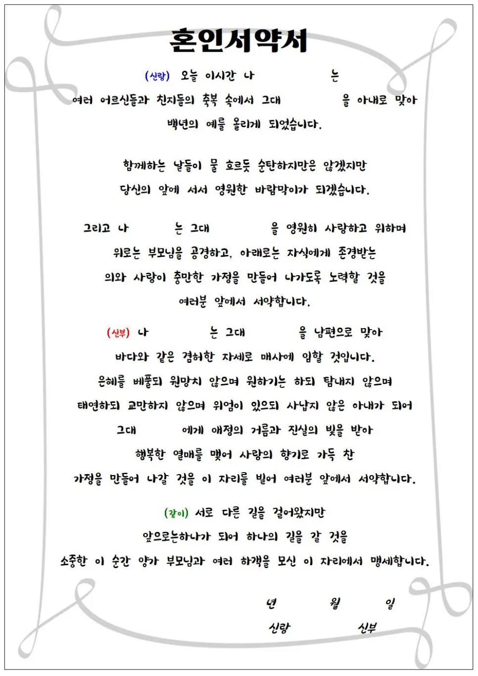 #결혼식 #혼인서약서 #성혼선언문 #결혼식순서 #덕담 #결혼준비 #웨딩체크리스트