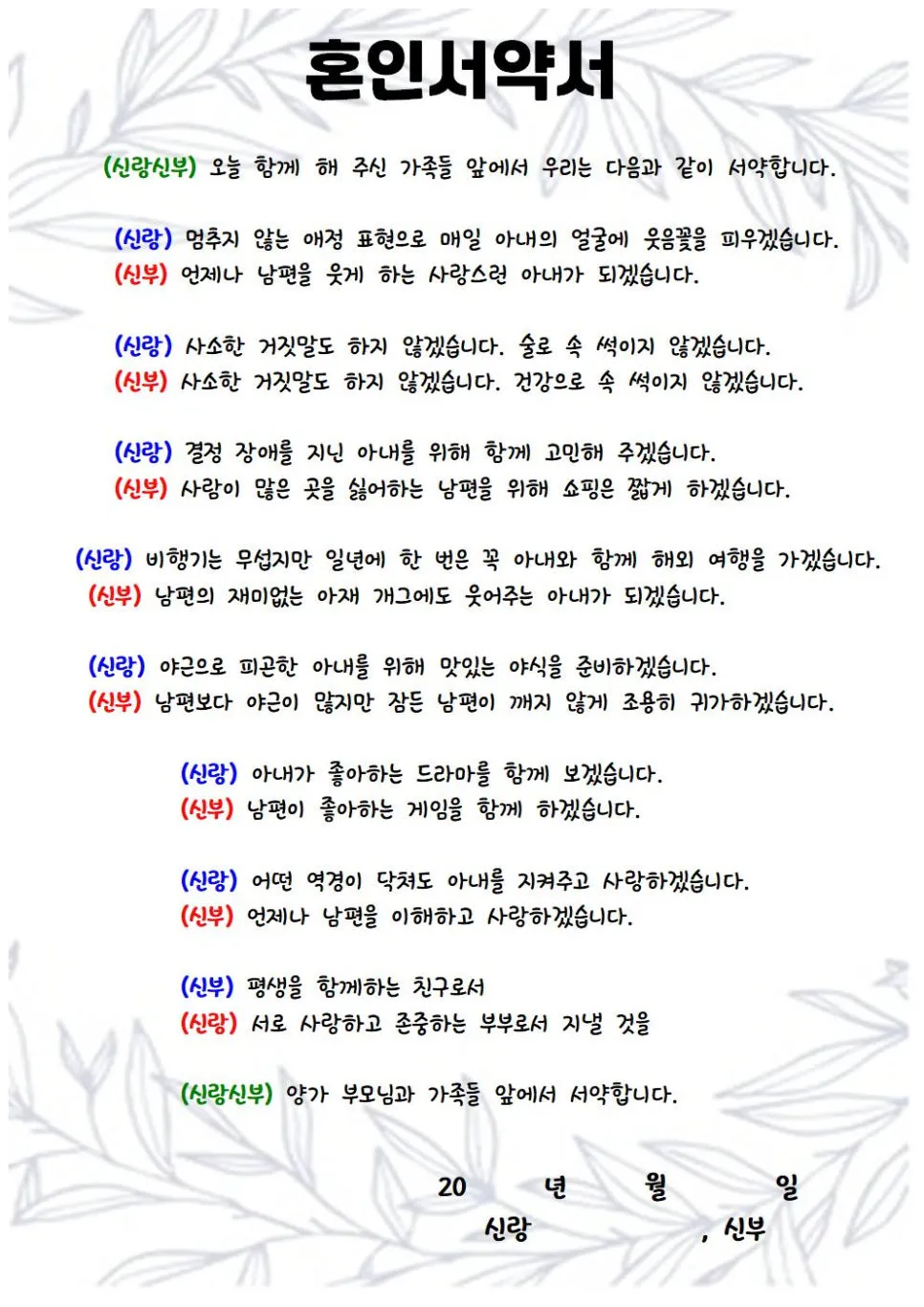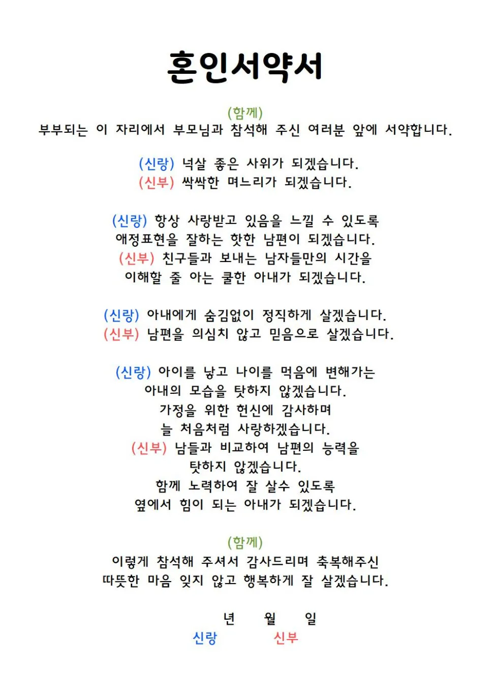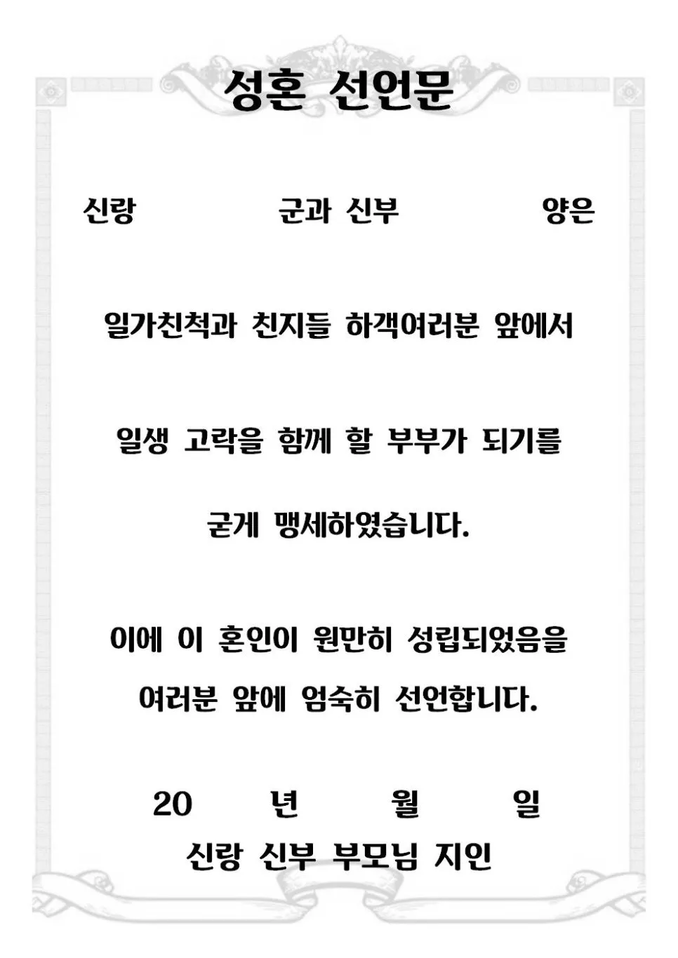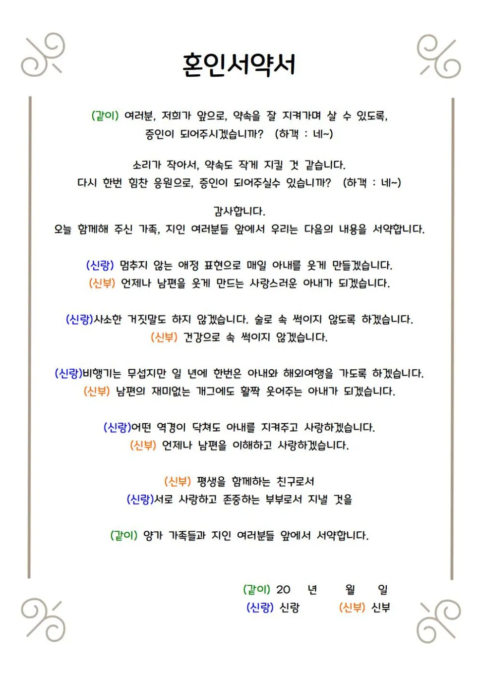 #결혼식 #혼인서약서 #성혼선언문 #결혼식순서 #덕담 #결혼준비 #웨딩체크리스트