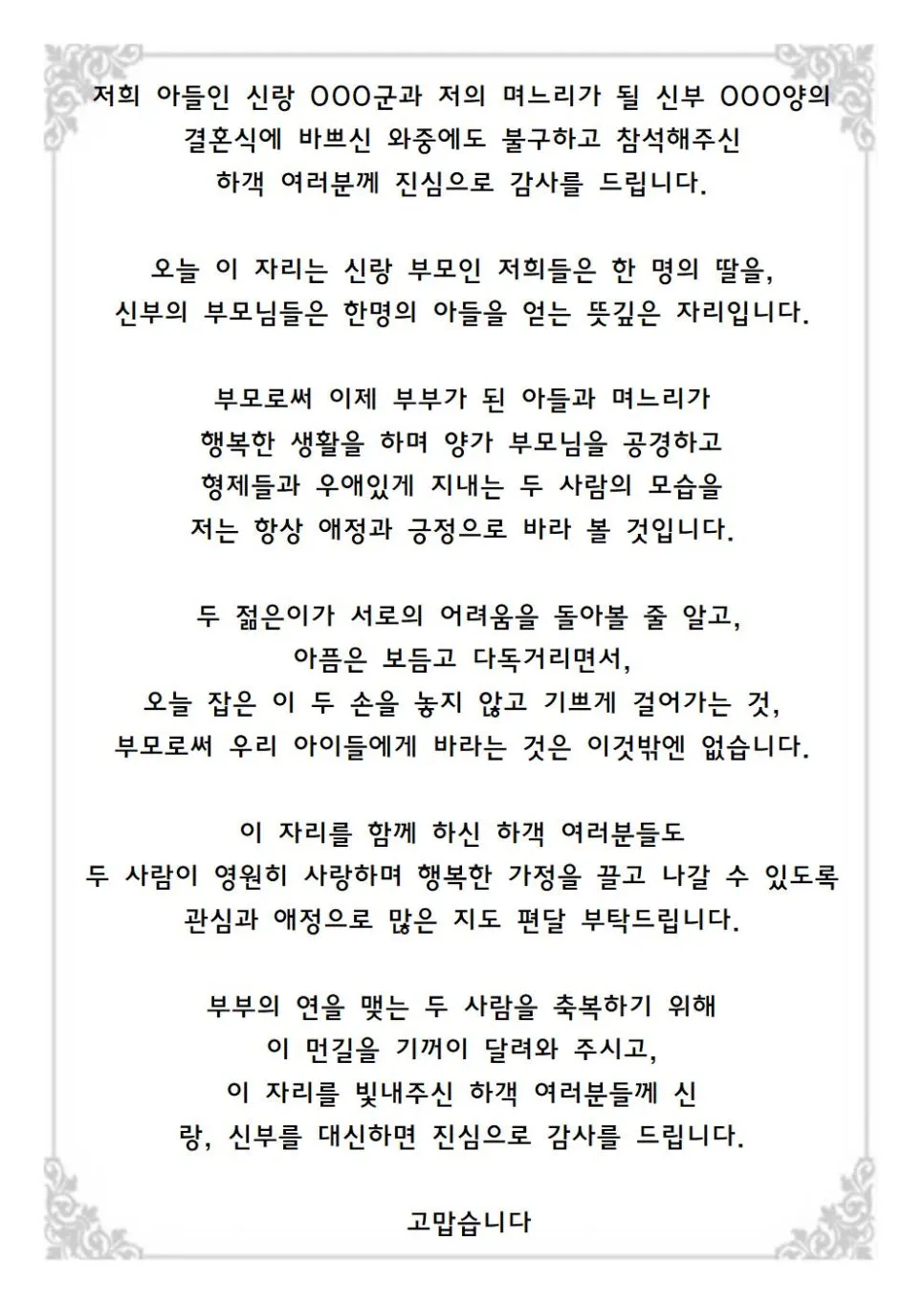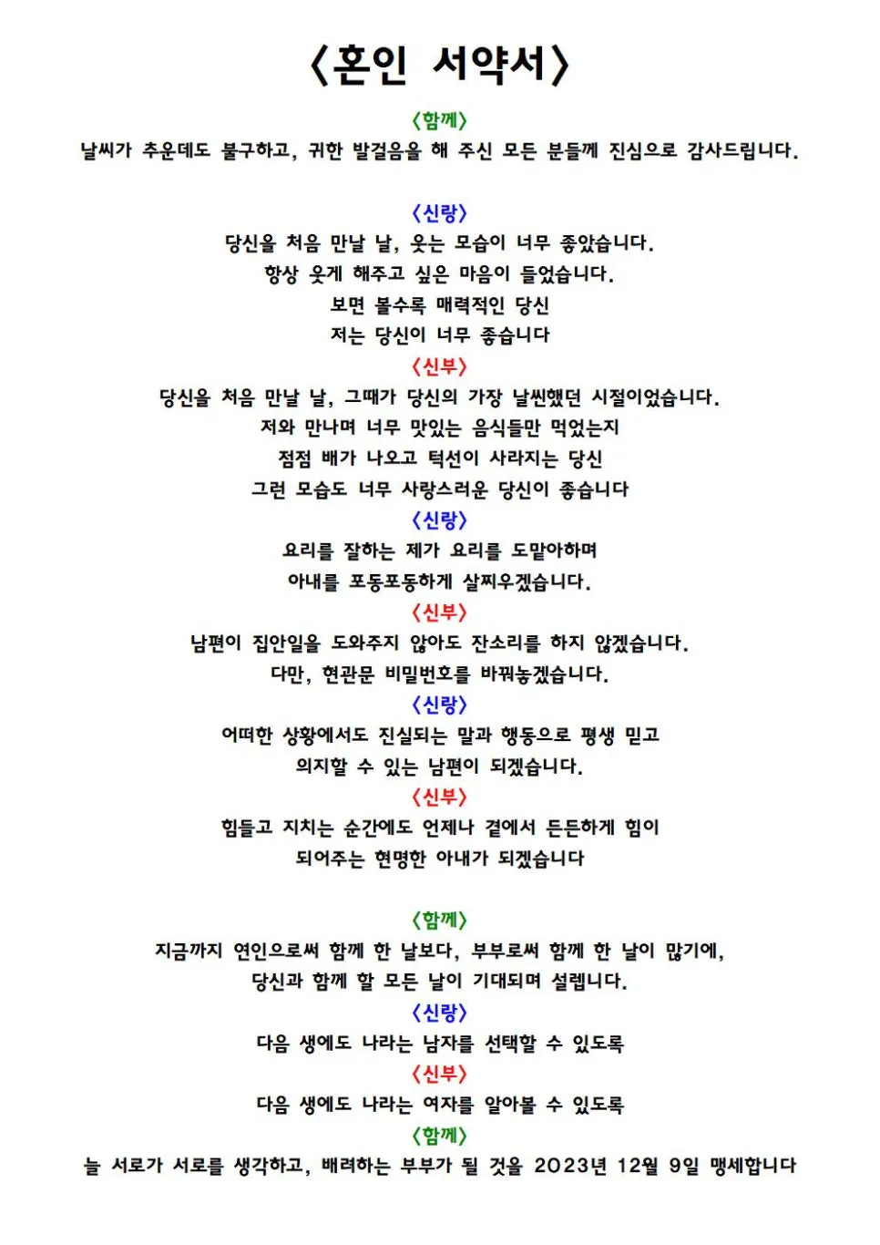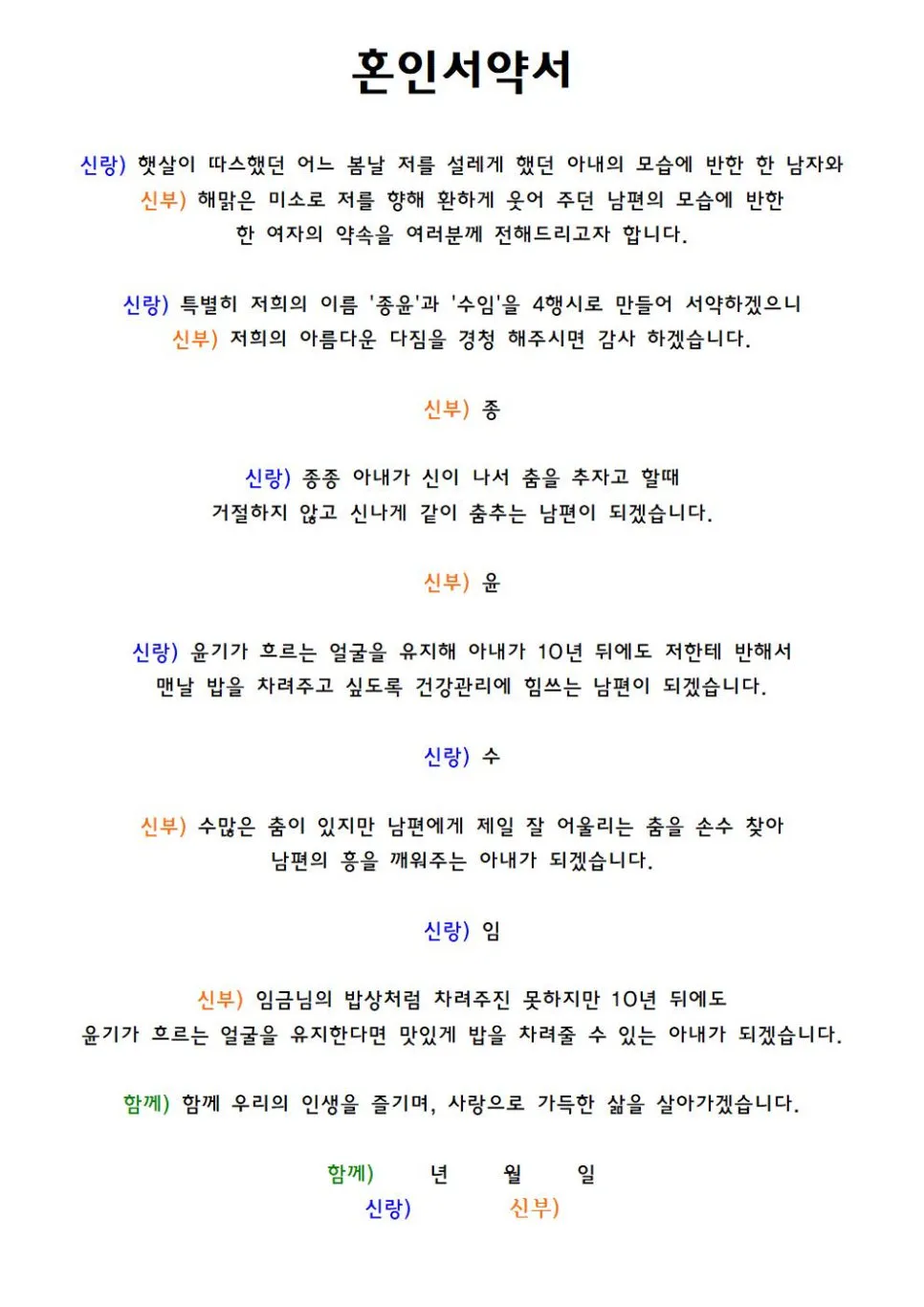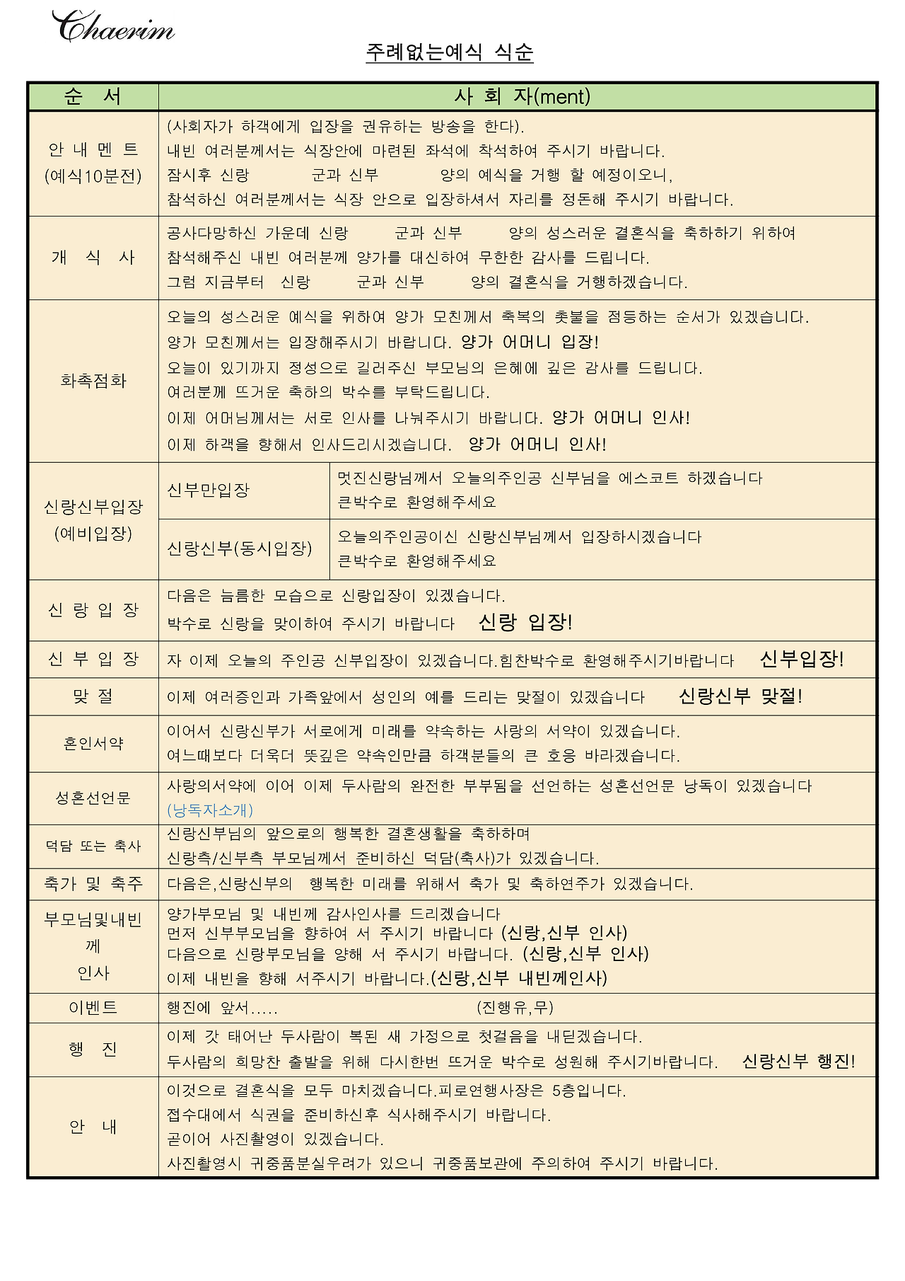 #결혼식 #혼인서약서 #성혼선언문 #결혼식순서 #덕담 #결혼준비 #웨딩체크리스트