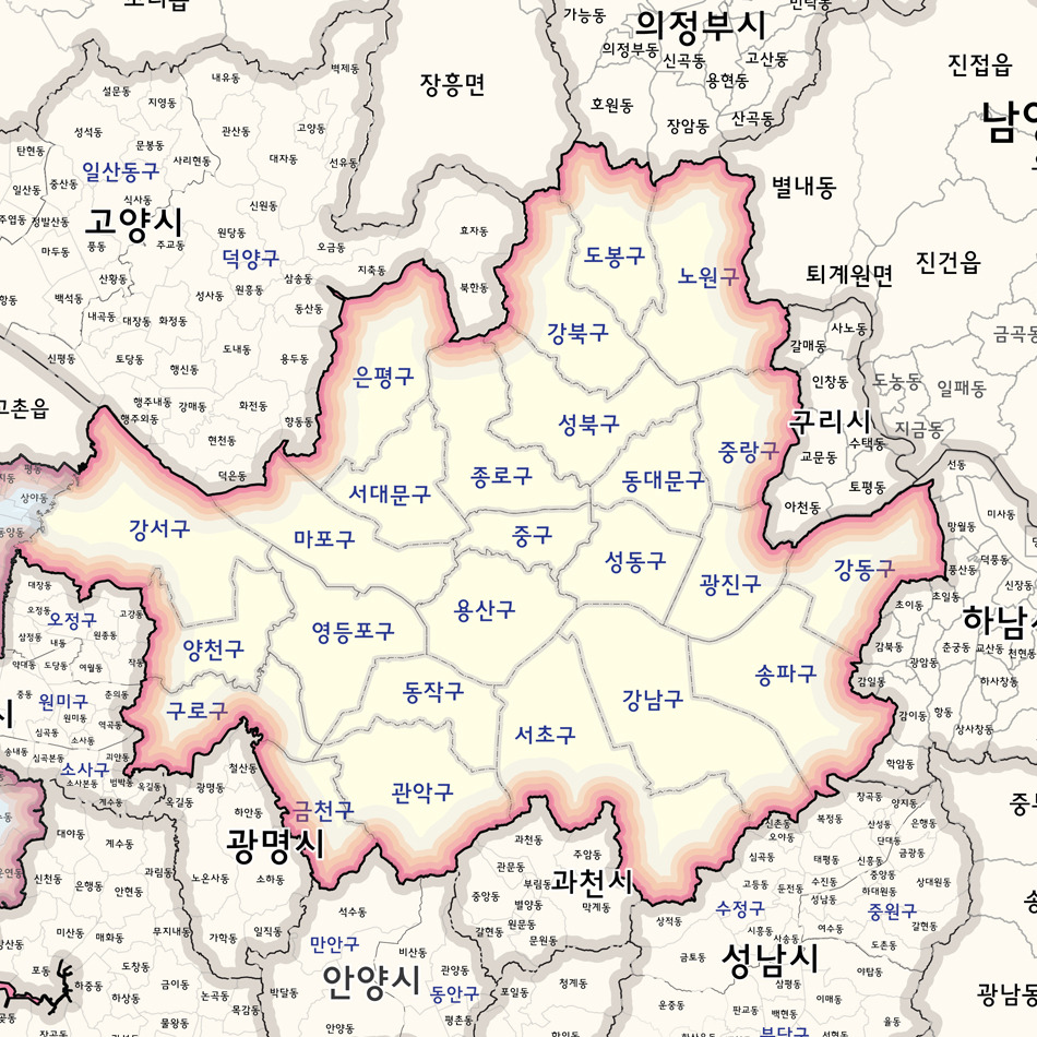 경기도,인천,서울 행정,법정경계 지도 제작사례