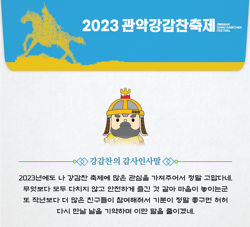 강감찬 장군의 리더십과 전략적 사고는 현대 사회에서도 여전히 유효합니다. 기업 경영, 팀 관리, 심지어 개인의 삶에서도 그의 지략에서 배울 점이 많습니다. 강감찬의 전략을 배우고 이를 현대적 상황에 적용해보는 것은 매우 가치 있는 일입니다. 끝으로 관악 낙성대에서 매년 10년 '관악강감찬축제'가 열립니다. 관심있으신 분들은 꼭 한번 가보셨으면 좋겠습니다.