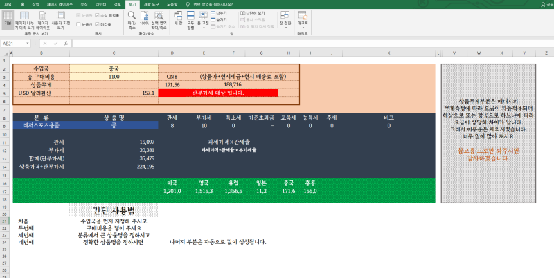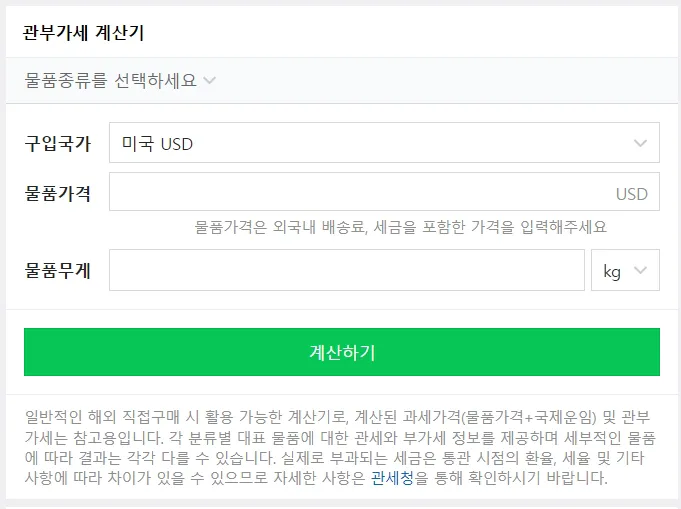 - 계산하기 버튼 클릭 : 모든 정보를 입력한 후 "계산하기" 버튼을 클릭하면 관부가세가 자동으로 계산됩니다.