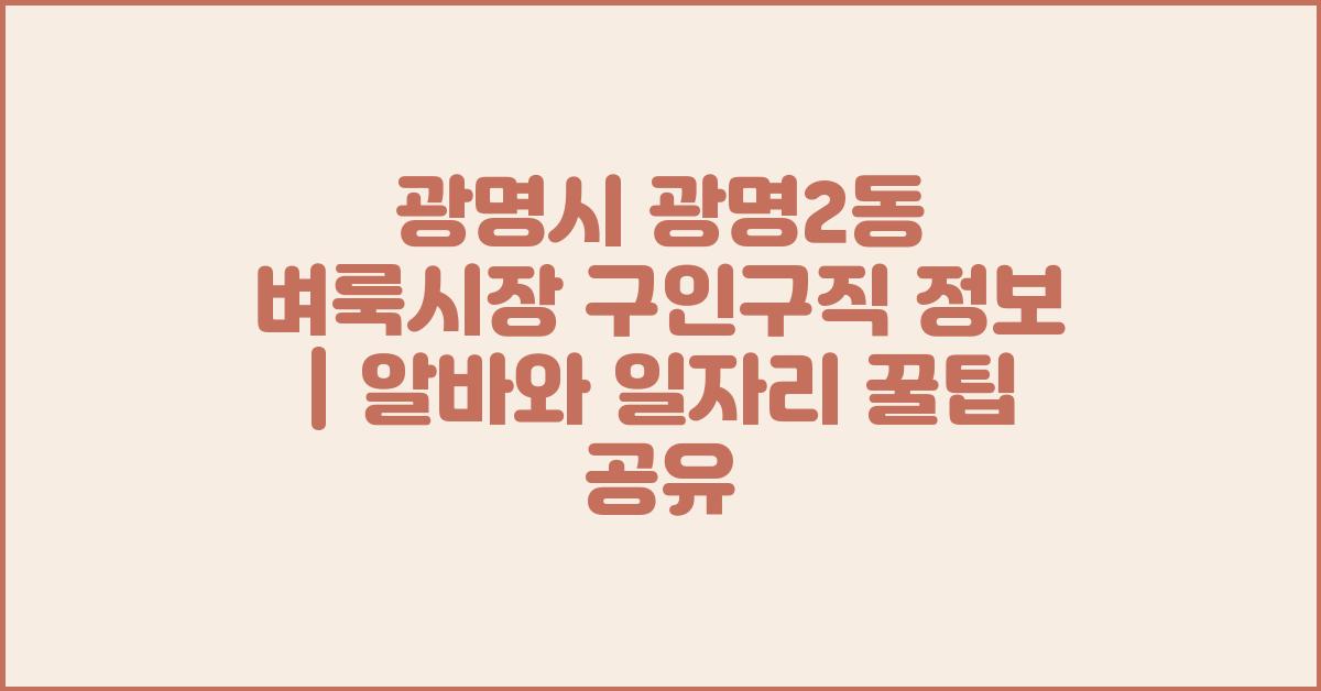 Q1: 광명시 광명2동 벼룩시장에서 구인구직 정보를 어떻게 얻을 수 있나요?