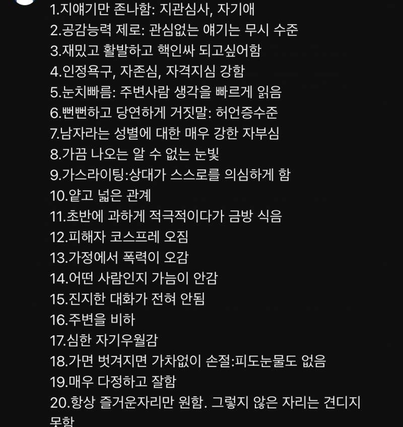 이거 나르시스트 특징임