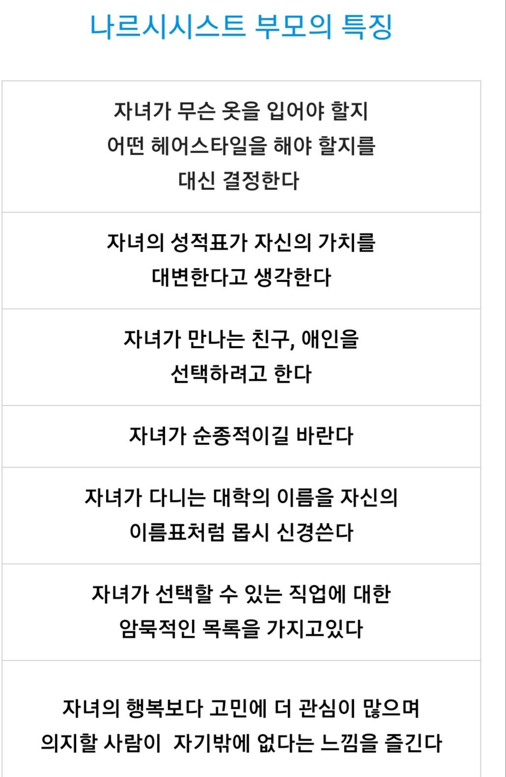 요즘 심리쪽에관심생겨서 보는데이거 완전히 우리아빠거든.우리나라부모중에 저런사람 많을수도 있는데 우리아빠는 굉장히 많이 심했어. 게다가 내가 성인이되고 취업을해서 독립을해도 저렇