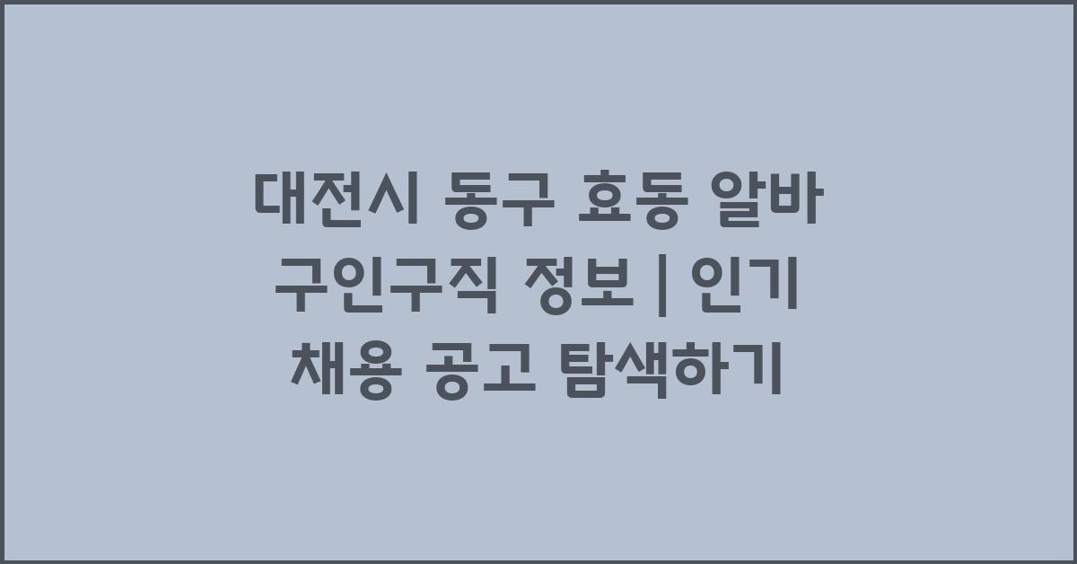 Q1: 대전시 동구 효동에서 가장 인기 있는 알바는 무엇인가요?