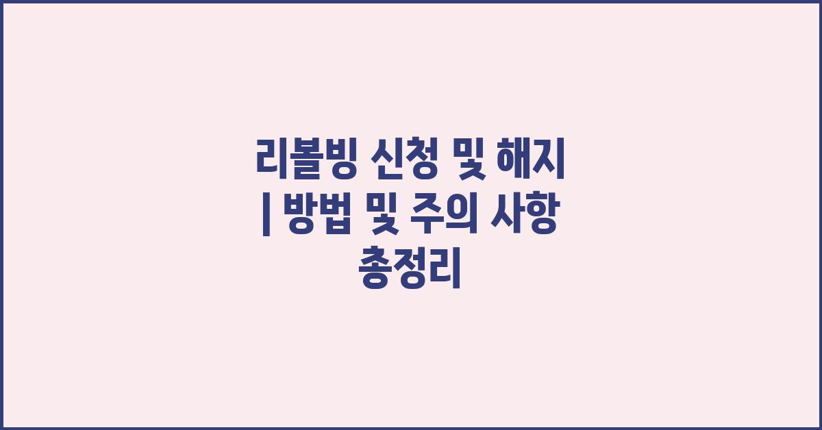 안녕하세요! 오늘은 많은 분들이 궁금해하시는 리볼빙 신청 및 해지에 관해 깊이 알아보려고 합니다. 리볼빙이란 재정 관리를 어떻게 할 수 있는지를 배우는 좋은 기회이기도 하죠. 특히 요즘 같은 시기에 적절한 재정 관리는 매우 중요한 요소입니다. 리볼빙 신청 및 해지 | 방법 및 주의 사항을 놓치지 마세요!