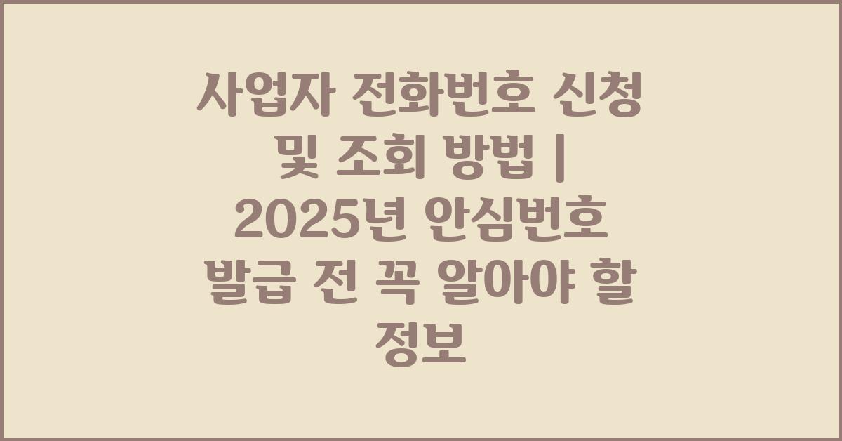 오늘은 사업자 전화번호 신청 및 조회 방법에 대해 살펴보려 합니다. 사업자 전화번호란, 사업체를 운영하며 고객과 소통하기 위한 필수 도구입니다. 특히 2025년부터 시행될 안심번호 서비스의 발급과 관련하여 유용한 정보를 제공할 것입니다. 사업자 분들이 꼭 알아야 할 내용이 많으니, 차근차근 정리해보겠습니다.