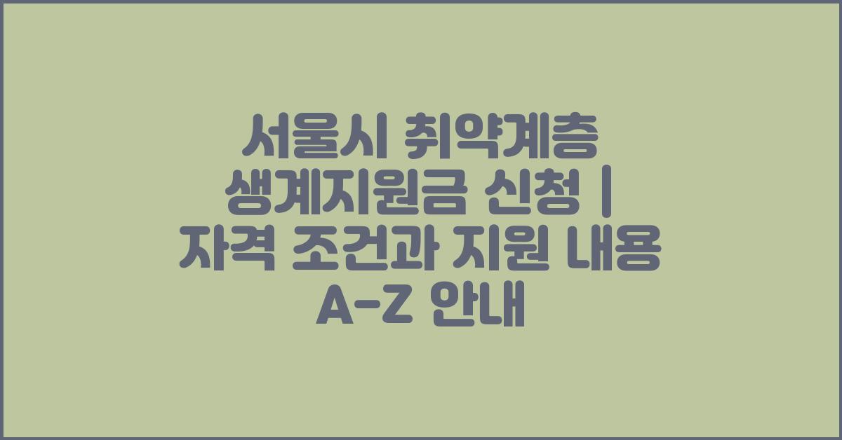 🌟 서울시 취약계층 생계지원금 신청 소개