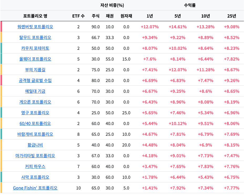 | 워렌버핏 포트폴리오 | 70% | 20% | 10% |