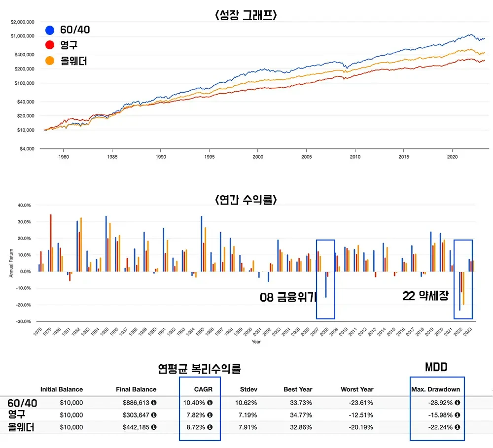 | 60/40 포트폴리오 | 60% | 40% | 0% |
