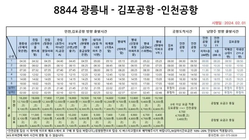 | 8844 | 광명 | 인천공항 | 약 1시간 | 15,000원 |