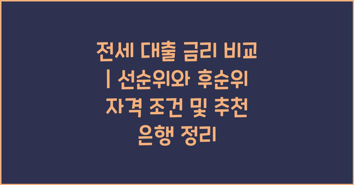 📊 전세 대출 금리 비교 | 선순위와 후순위 대출 금리
