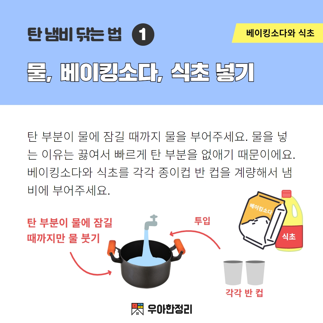 베이킹소다와 식초로 탄 냄비 닦는 법 깨끗하게 세척해보세요! : 우아한정리 - 생활꿀팁 저장소