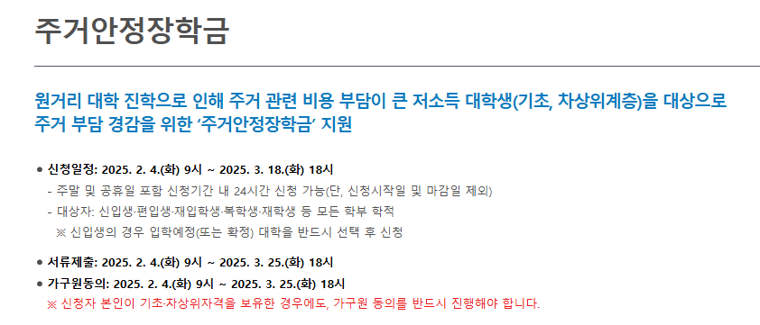 #주거안정장학금 #대학생장학금 #저소득대학생 #주거비지원 #2025장학금
