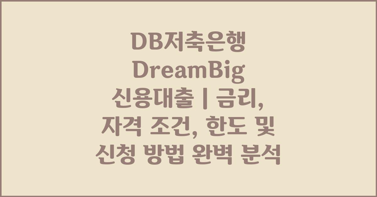🌟 DB저축은행 DreamBig 신용대출 소개