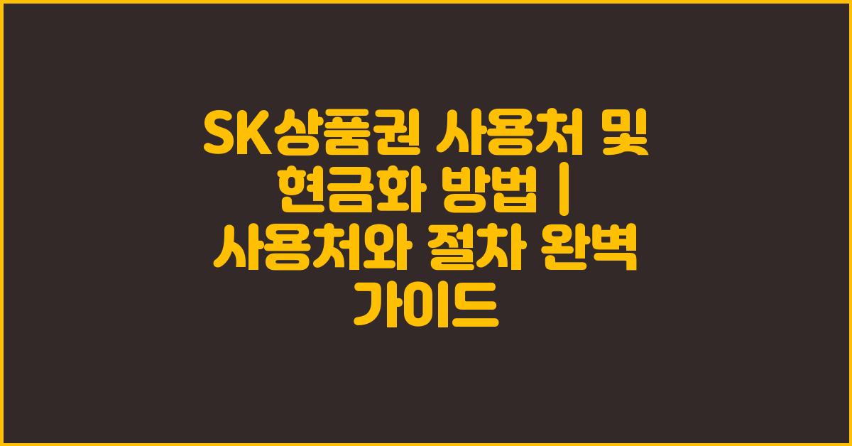 🔍 SK상품권 사용처 및 현금화 방법 요약